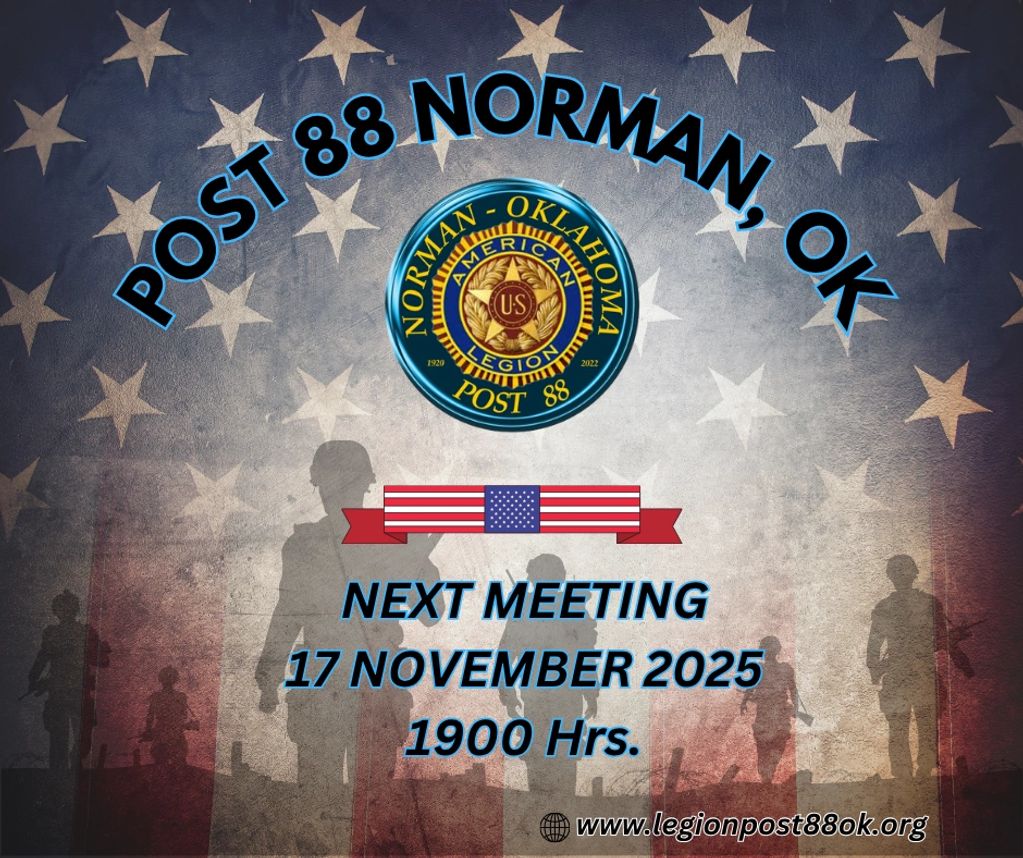 Thank you for stepping up to lead with honor, commitment, and service. Together, we know you’ll continue the proud legacy of American Legion Post 88 and make a lasting impact in Norman and beyond.